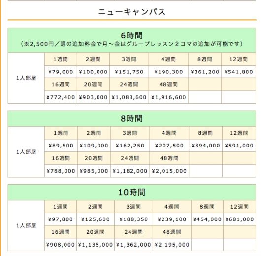 (追記)現在は新しくニューキャンパスができ、昔のキャンパスより少し高い価格でプログラムが提供されています。予算との兼ね合いで好きな方を選ばれるのが良いでしょう。