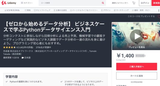 Udemyのデータサイエンス入門講座