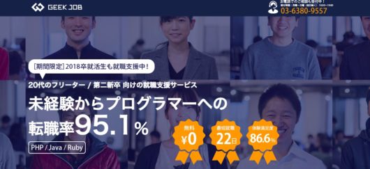 そのため、Webサービスなどによく利用される「Ruby」を無料で学んでプログラマーに就職したい20代の方は、GEEKJOBキャンプを利用されるのが良いでしょう。