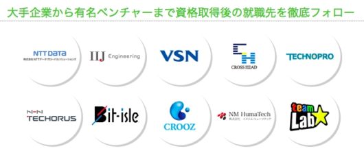 就職支援先も大企業から有名ベンチャー企業まで多数の繋がりがありますので、ネットワークエンジニアを目指したい方は、ネットビジョンアカデミーが適しています。