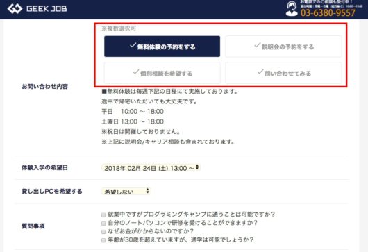 GEEKJOBキャンプの無料体験/説明会/個別相談予約の方法