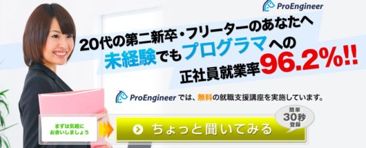 一方、完全無料でプログラミング研修と就職支援をしてもらえて、就職先に縛りがない方が良い場合は、エンジニアカレッジ(【完全無料プログラミング研修&就活塾】)を利用するのも一手でしょう。