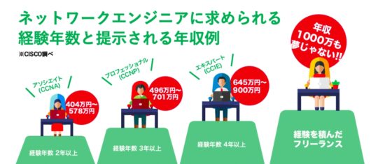 もちろん、ネットワークエンジニアとして働いていく場合、経験年数を積むにつれて、一般的なサラリーマンよりも年収が高くなっています。