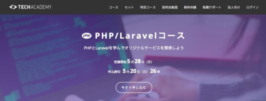 最後に、筆者も受講したTECH ACADEMYでは、完全オンラインで、PHP/Laravelに特化して学ぶことができます。