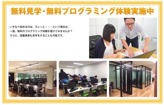 なお、プロエンジニアのエンジニアカレッジは、随時無料見学・無料プログラミング体験を実施しています。