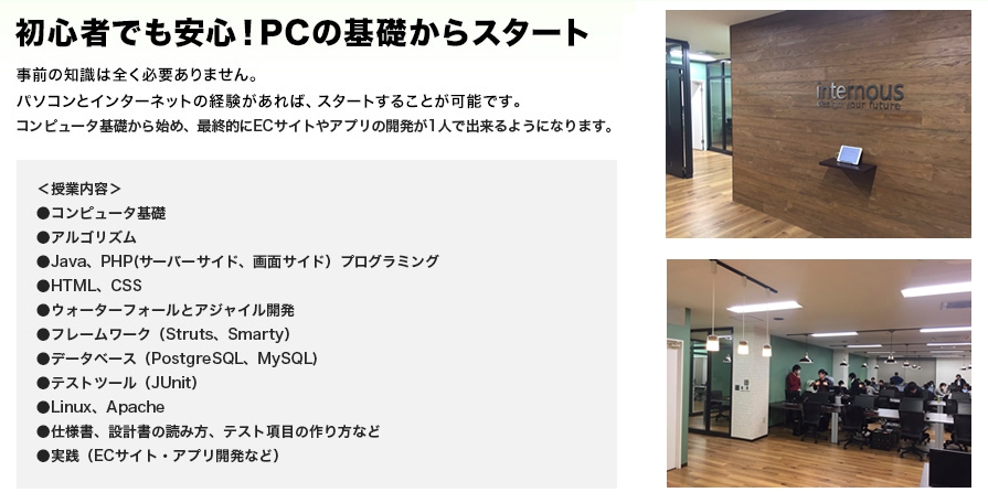 ・完全無料 ・教室に通うチーム実践形式のスクール(Java/PHP) ・20〜29才で、東京・神奈川・千葉・埼玉に在住の方向け ・正社員のITエンジニアに就職したい方が対象 |