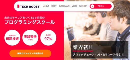 ですので、3ヶ月程度集中してプログラミングを学び、しっかりと技術を身に付けたい方には、テックブースト(Tech Boost)が一番適しているでしょう。