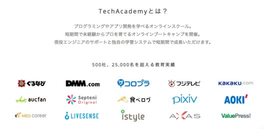 完全オンラインのプログラミングスクールのTech Academyは筆者も受講しましたが、講師は現役エンジニアで、オンラインテキストの質も高いです。