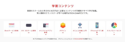 ただし、筆者もTech Academyは受講しましたが、Webアプリケーションやiphoneアプリなど、コース別に細かく別れています。