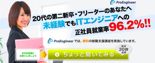 サービスの対象は、高校卒業から29歳までの方で、主に東京でエンジニア(プログラマー/システムエンジニア/インフラエンジニア等)への転職意欲がある方となっています。