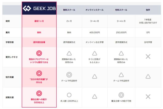 | GEEK JOBキャンプ (口コミへ) |