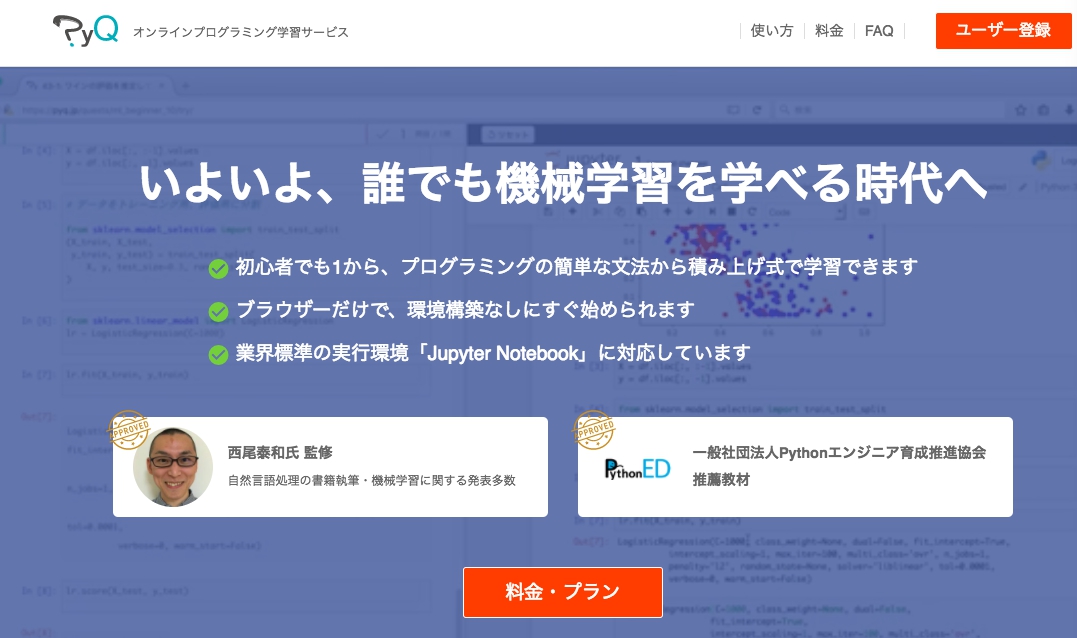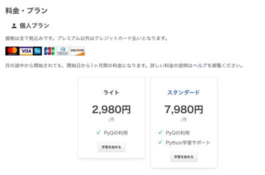ちなみに、PyQはただ利用するだけであれば月額2,980円と、非常にリーズナブルになっています。学習サポートがつくと7,980円です。