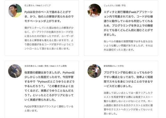 オンライン学習サービス「PyQ™(パイキュー)」の口コミや評判をお伝えします。