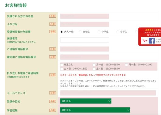 こうして情報を入力して送信すれば、無料体験レッスンのお申し込みは完了です。