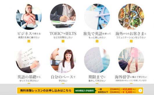 現在英会話スクールの受講を検討されている方などは、一度下記の公式サイトから、無料体験レッスンを受けて見てはいかがでしょうか?
