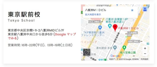 テックキャンプ東京駅前校は、東京駅八重洲中央口から徒歩5分と紹介されています。