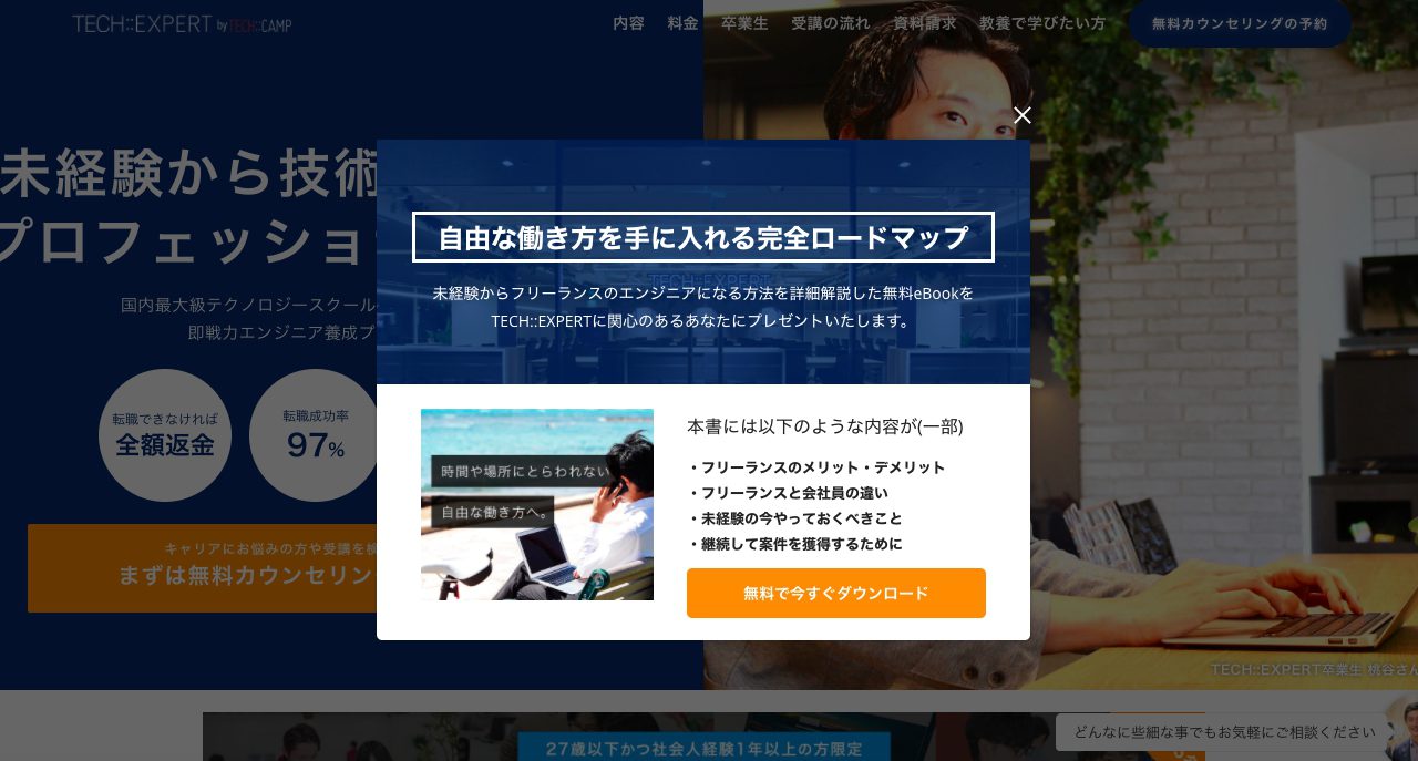 以前に筆者も受講したテックキャンプですが、今では「テックエキスパート(TECH:EXPERT)」という、エンジニアの就職支援サービスも提供されています。