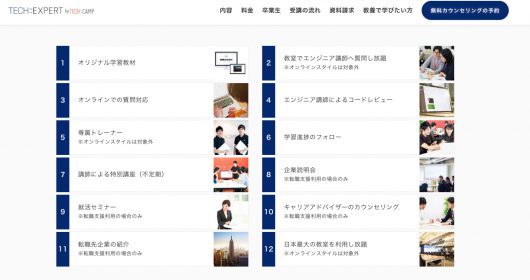 テックキャンプエキスパート(TECH:EXPERT)の特徴は?