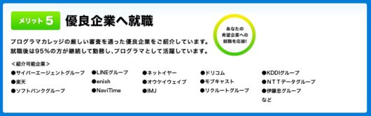 ただし、先ほどご紹介したエンジニアカレッジ(旧:プログラマカレッジ)のように、すでに提携先企業があったり、これまで10年以上の就職支援実績がある訳ではありませんので、テックキャンプはまだまだこれからなのかもしれません。