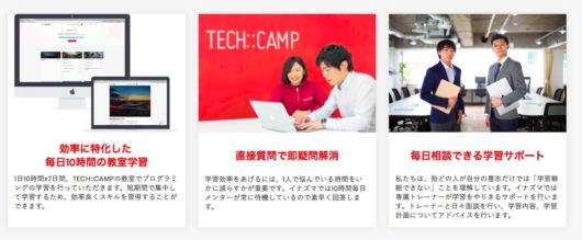 そのため、将来的にエンジニア転職を検討されている方の場合は、イナズマコースよりもTECH::EXPERTの受講を検討された方が良いでしょう。