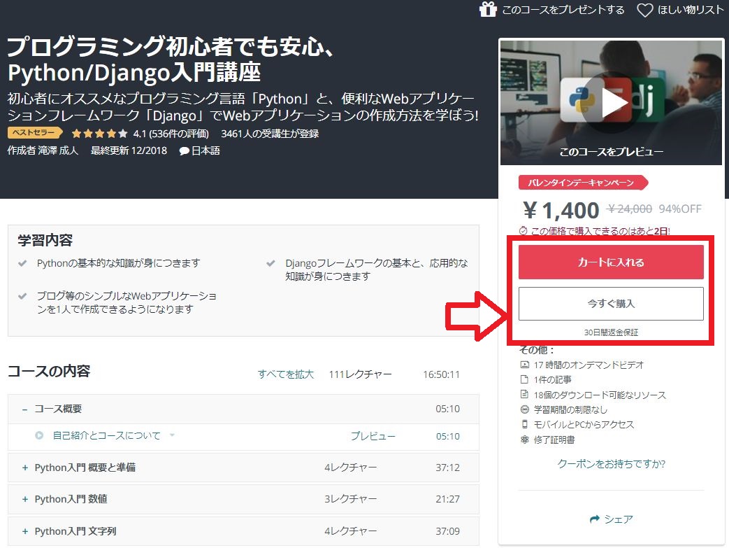 (他にも講座を購入する予定がある人はカートに入れておいて後からまとめて購入も可能)