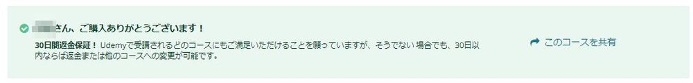 これで購入が無事に完了しました。30日間の返金あるいは他のコースへの変更も可能な様子。