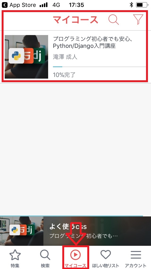 マイコースを選ぶと、先ほど購入した講座があるのが分かります。