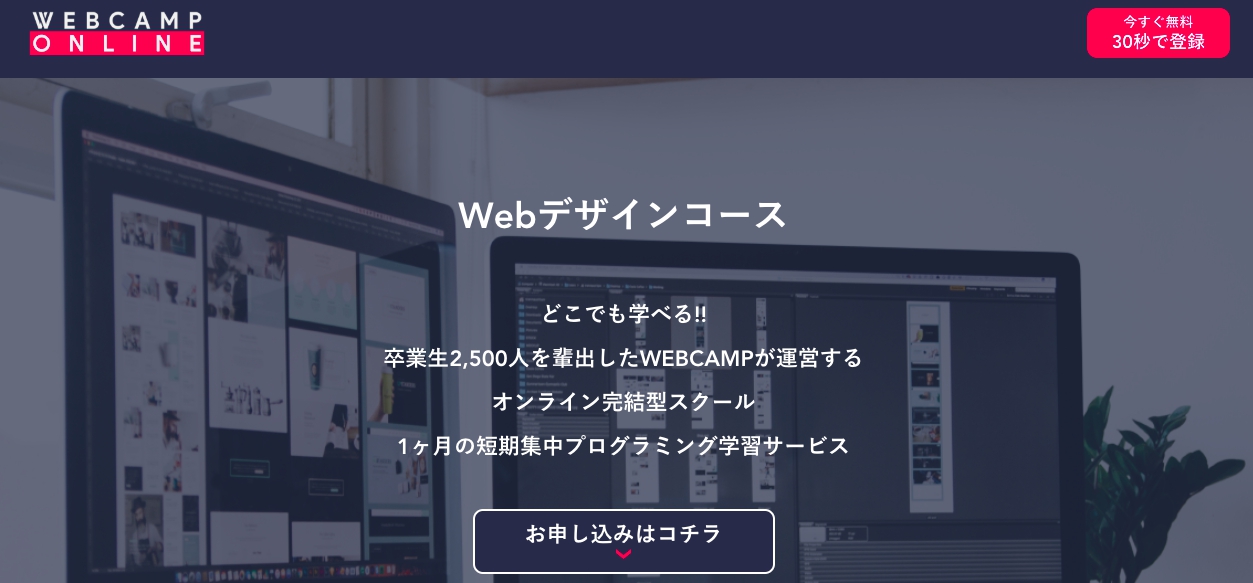 WEBCAMP ONLINEのWebデザインコースは、プログラミングやデザインの未経験・初心者の方向けに、短期間でホームページやWebサイトが制作できるスキルを習得する「オンライン完結型」のプログラミング学習サービスです。