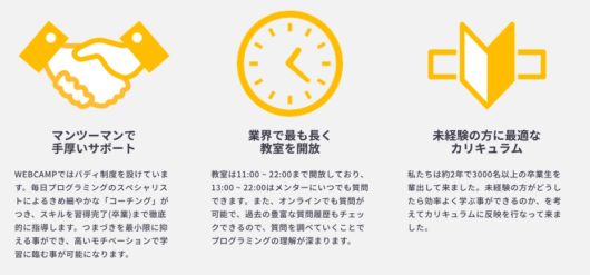 webデザインだけでなく、プログラミングも両方とも学びたい方で、渋谷教室に通える方であれば、webcampはおすすめです。