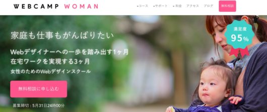 また、webcampは主婦・ママ向けにWEBCAMP WOMANを提供しています。