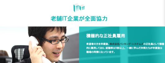 ただし、実際のところは卒業生の多くはバンキング・システムズの正社員として就職しているようです(希望者の就職率は9割以上)。