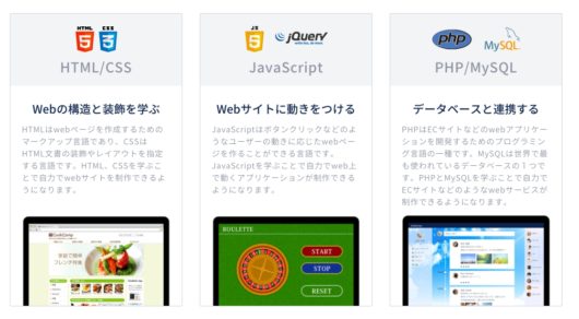 カリキュラムも基本的なHTML/CSSから、Webサイトに動きをつけるためのJavaScriptやJQuery、さらにはデータベース部分のPHP/MySQLまで学ぶことができます。