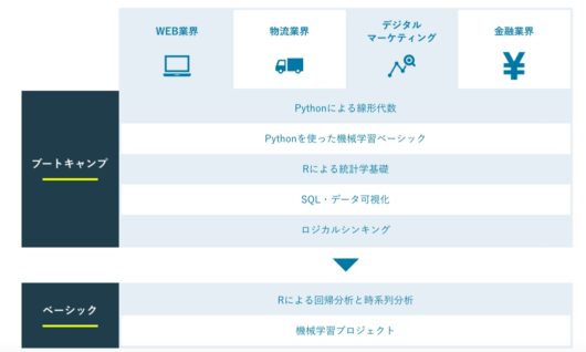 こちらのプログラムは、未経験の方であってもデータサイエンティストのエントリー職として仕事に就けるレベルにまで引き上げることを目的としています。