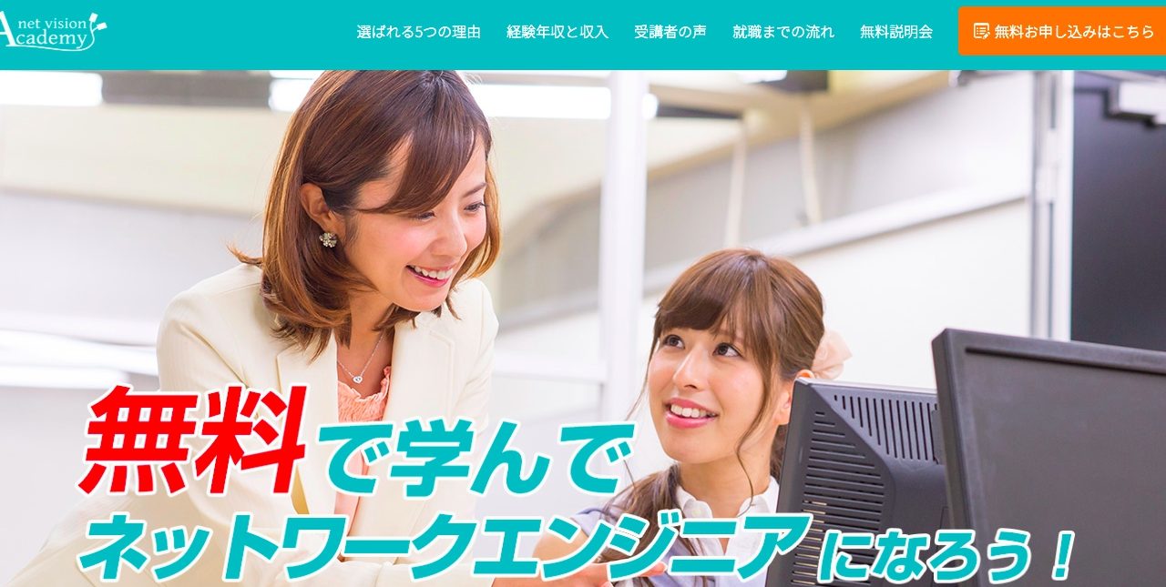 ネットビジョンアカデミーは、未経験からITエンジニアを目指す方に、ネットワークエンジニアになるための無料プログラムを提供しています。