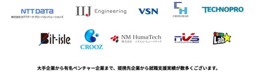 また、NTTデータなどの大手企業や、チームラボなどのITベンチャー企業まで、幅広い就職支援実績があります。
