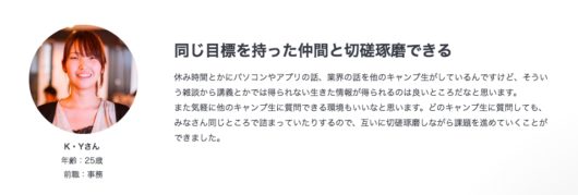 また、プログラマー転職という同じ目標を持った仲間と、一緒にプログラミングを勉強できる環境も、大きなメリットと言えるでしょう。