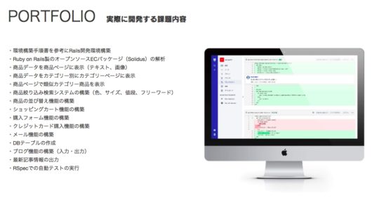 | 対象者 | エンジニアとして就職・転職したい方で、少しでもRailsの学習経験がある方(未経験者は20代まで・経験者は30代まで) |