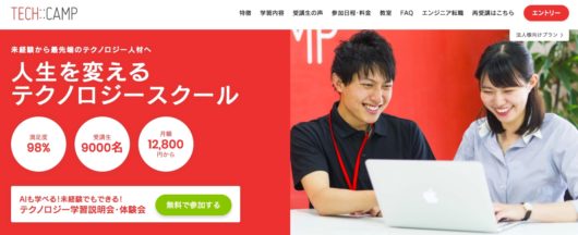 もしくは、様々なコースが受講し放題のテックキャンプが良いでしょう。筆者もテックキャンプは受講しましたが、初月128,000円+翌月から月額12,800円で受講が可能です。