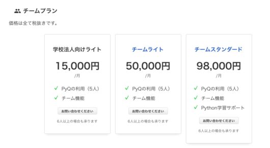 PyQの料金・プランは個人プランとチームプランがあり