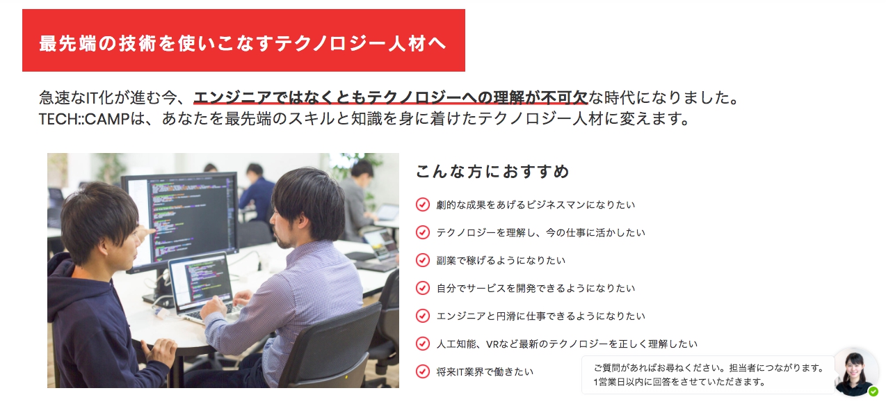 テックキャンプ八重洲校の口コミや受講が向いている人についてです。