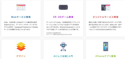 テックアカデミーは筆者も受講しましたが、特定の領域を学べるように、コースが細分化されています。そのため、初めから特定のコースを学びたい方におすすめです。