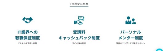 また、IT企業への転職が決まった方には、受講料を全額キャッシュバックしてくれる制度もあります。