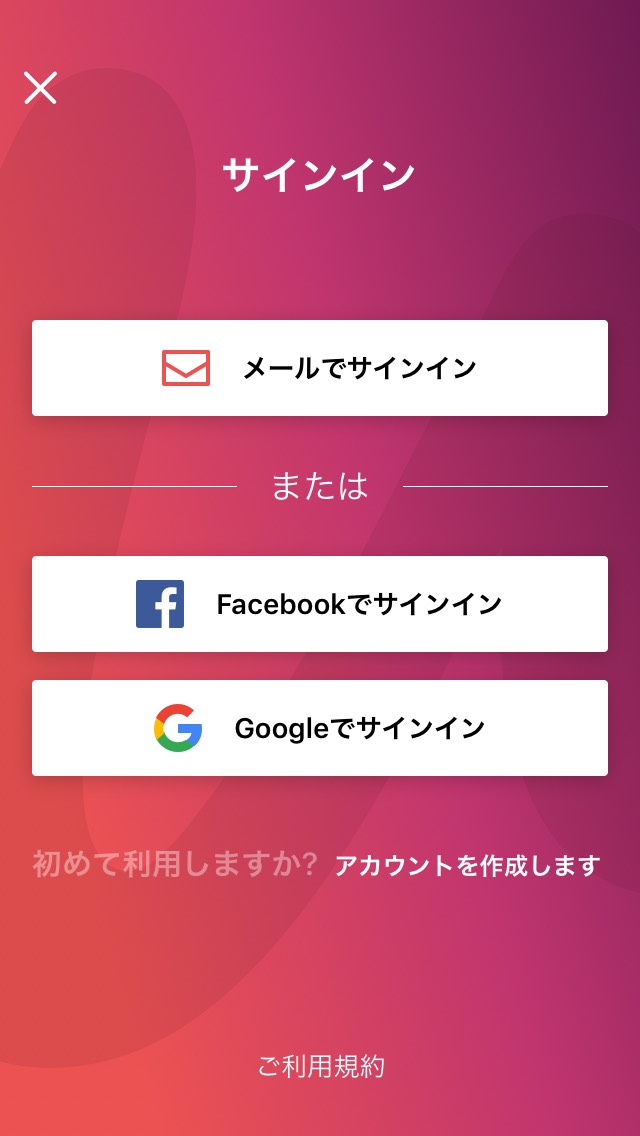 すでにPCでアカウント作成済の場合は【メールでサインイン】を選びます。